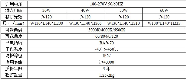 90°光束角、120°光束角 主要参数: