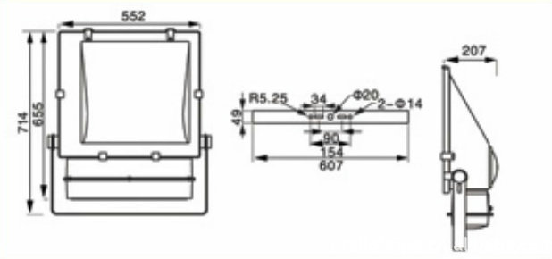适用场所 建筑物、体育场、广场、码头、绿化照明、广告、大厦外景、车站、铁路、隧道、港口灯户外照明。 产品尺寸 配光曲线 使用效果图