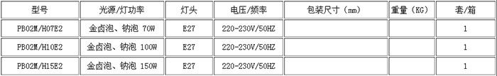 防爆小功率投光灯PB02所该注意的问题: 注:该系列标准配置:150W金属卤化物灯。也可根据需要配用光源;70W,100W金卤灯或70W,100W高压钠灯。 适用范围: 石油钻井平台,油能船舶,1区,2区危险场所;ⅡA,ⅡB,ⅡC类爆炸性气体环境:户内,户外(IP65)。 产品尺寸: